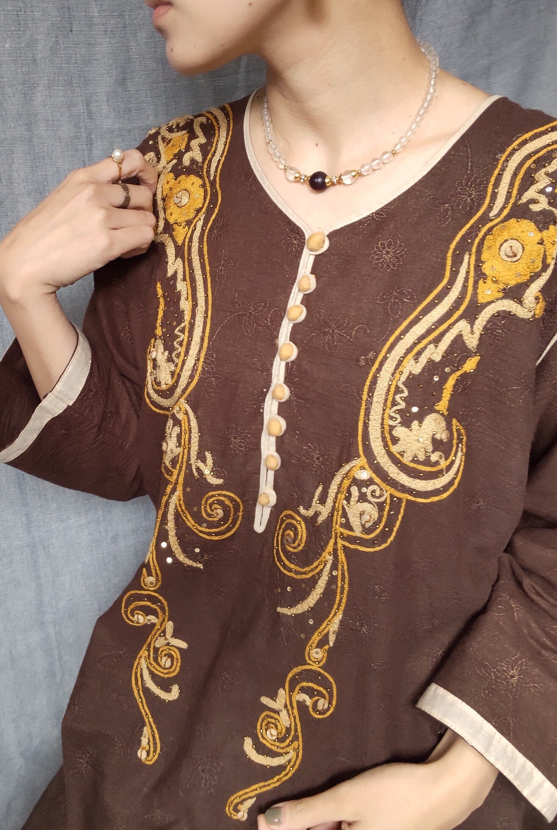 ヴィンテージブラウンカフタンドレス001 | chaoya34610