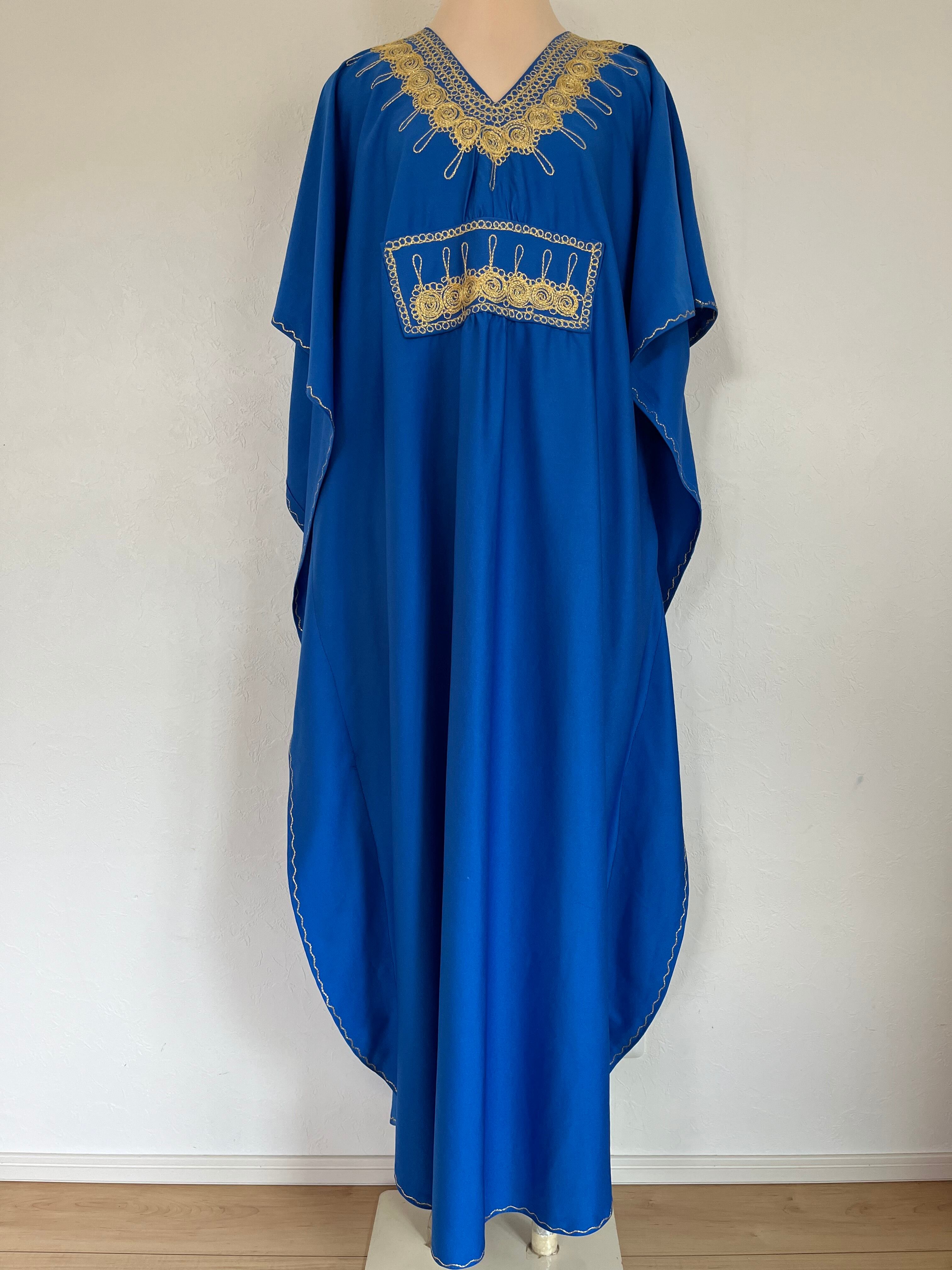 爽快感溢れるブルーカフタンドレス