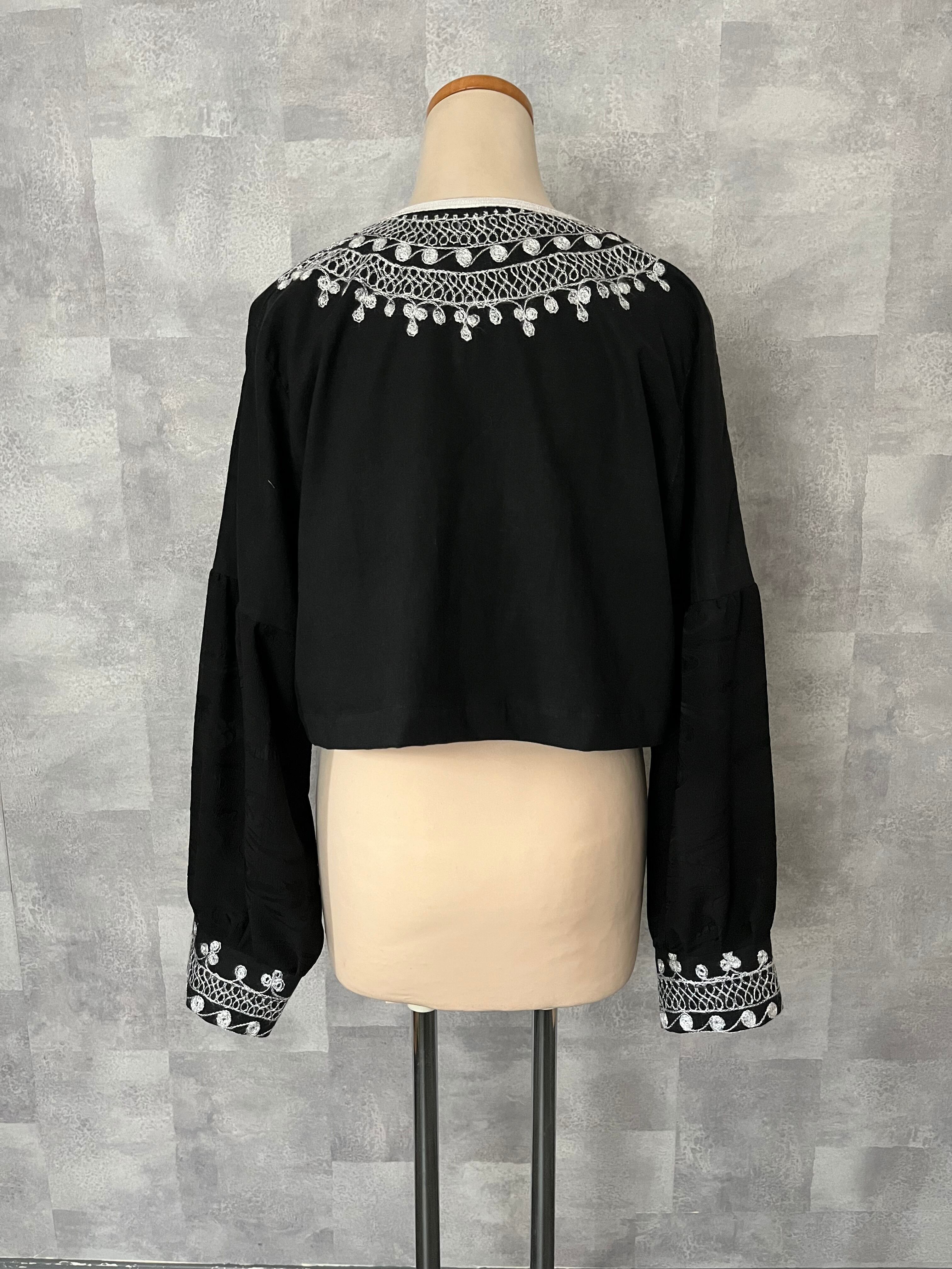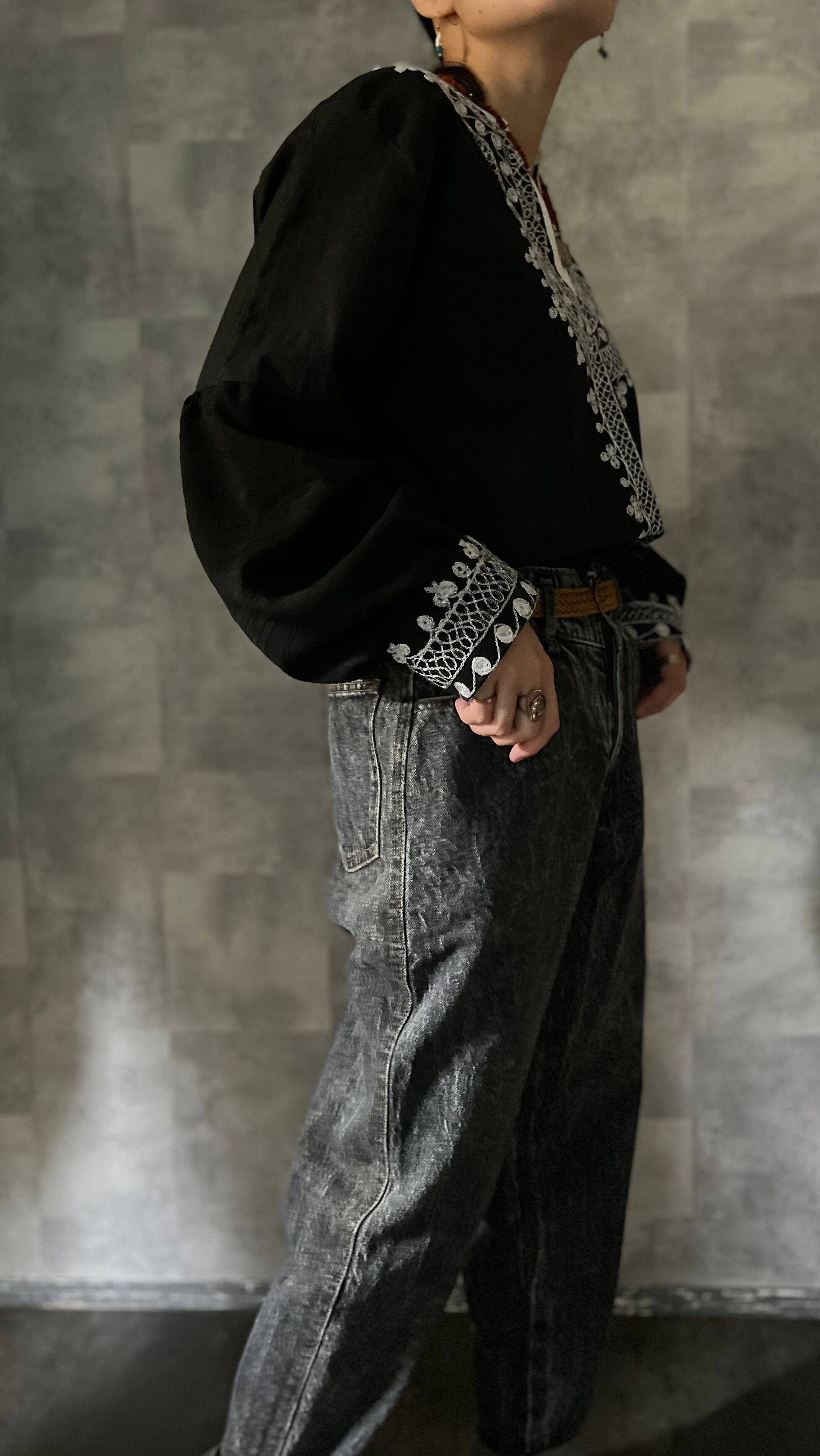 袖部分には ブラックのヴィンテージ着物を合わせ、