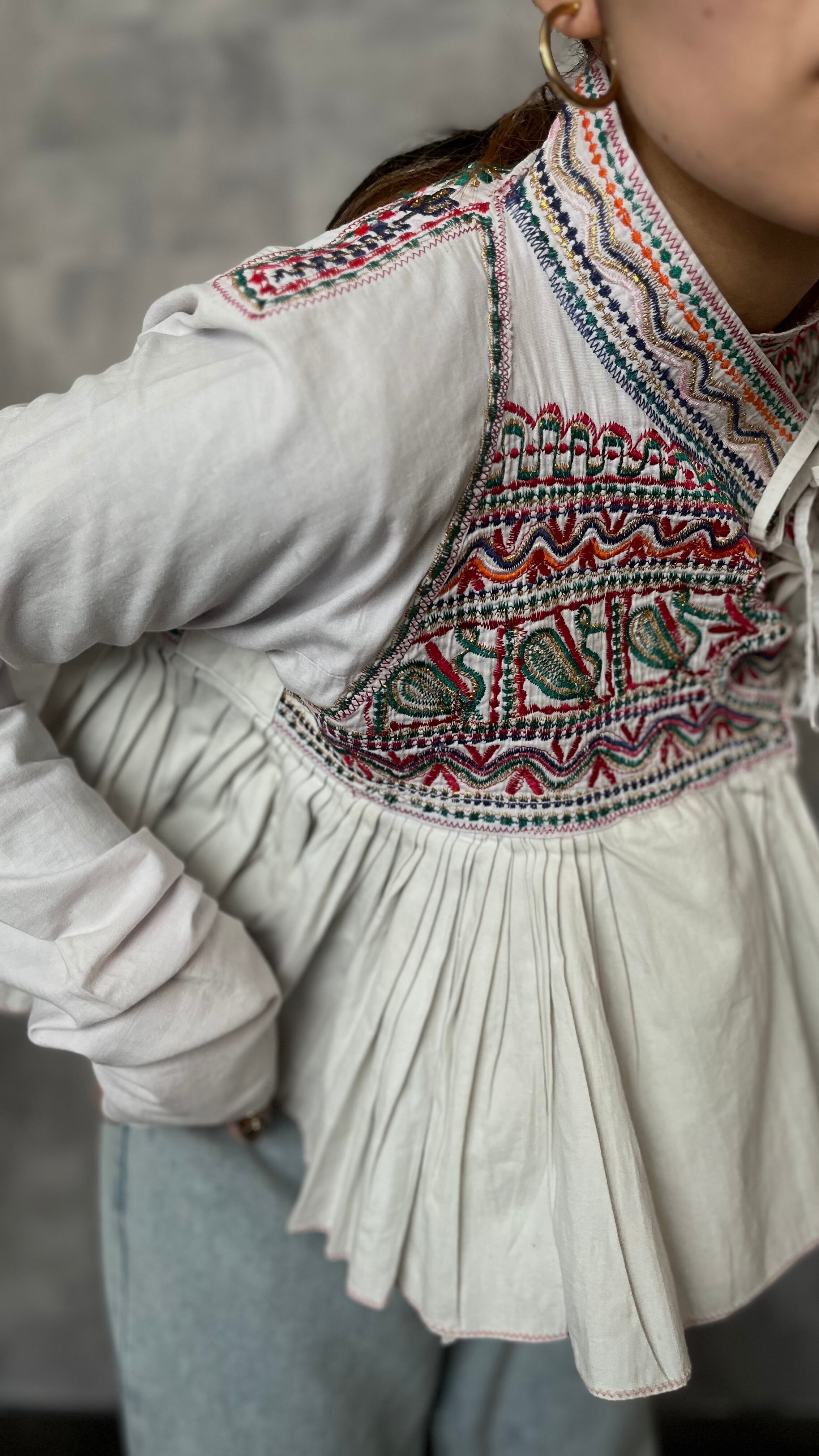 肩周りのきめ細かい緻密な刺繍は