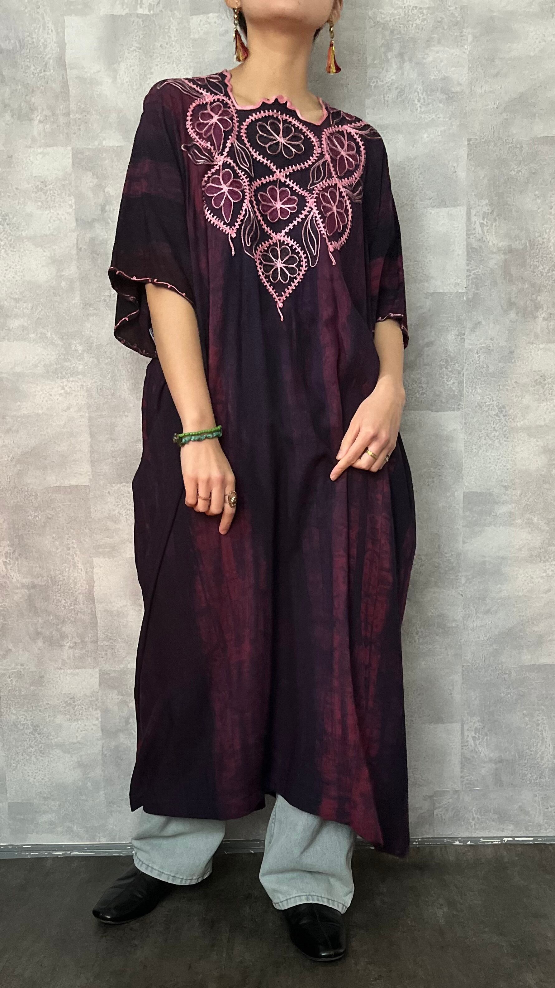 ヴィンテージカフタンドレス【purple flower】