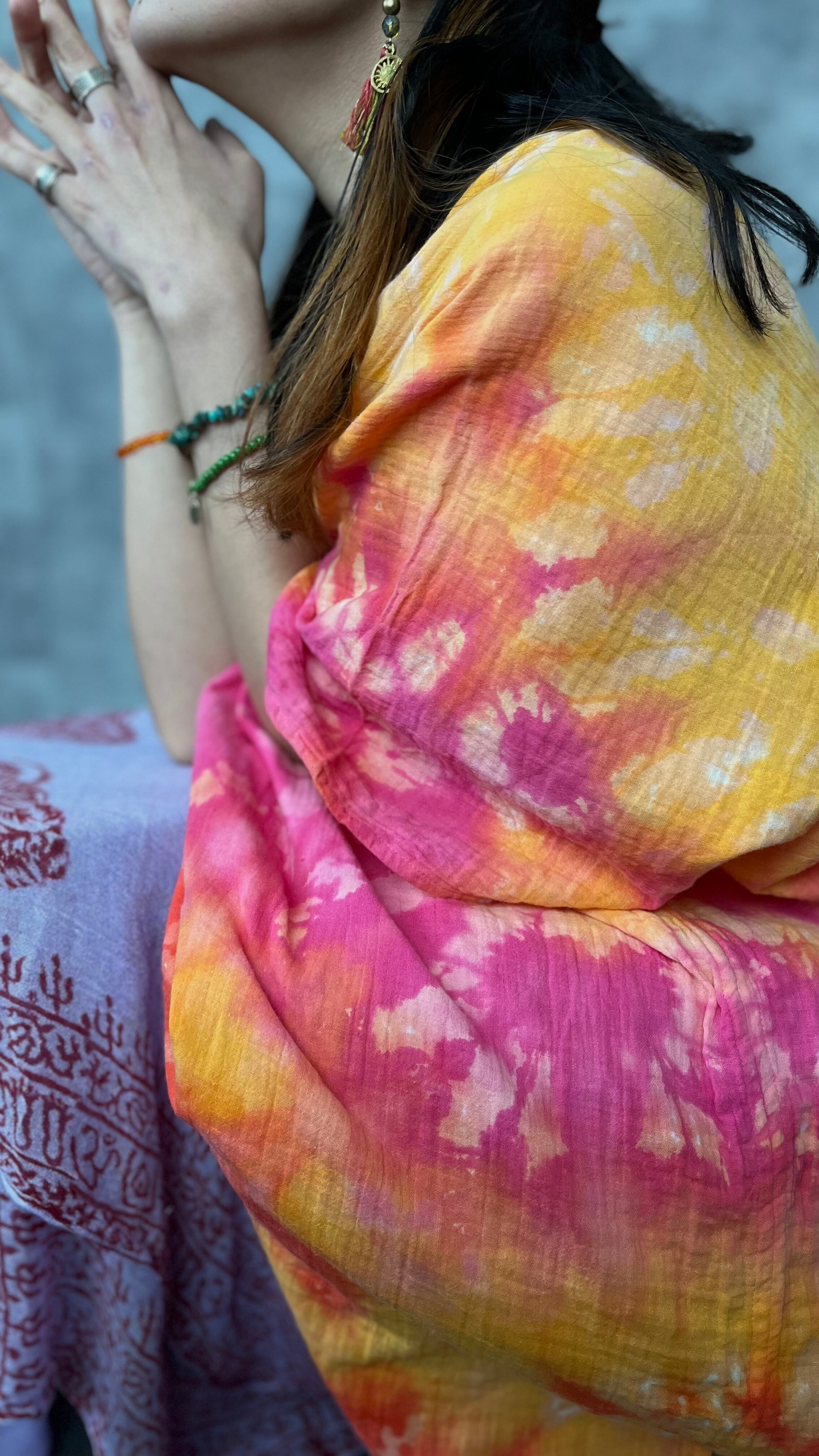 shortタイダイ染めカフタンドレス【生命】
